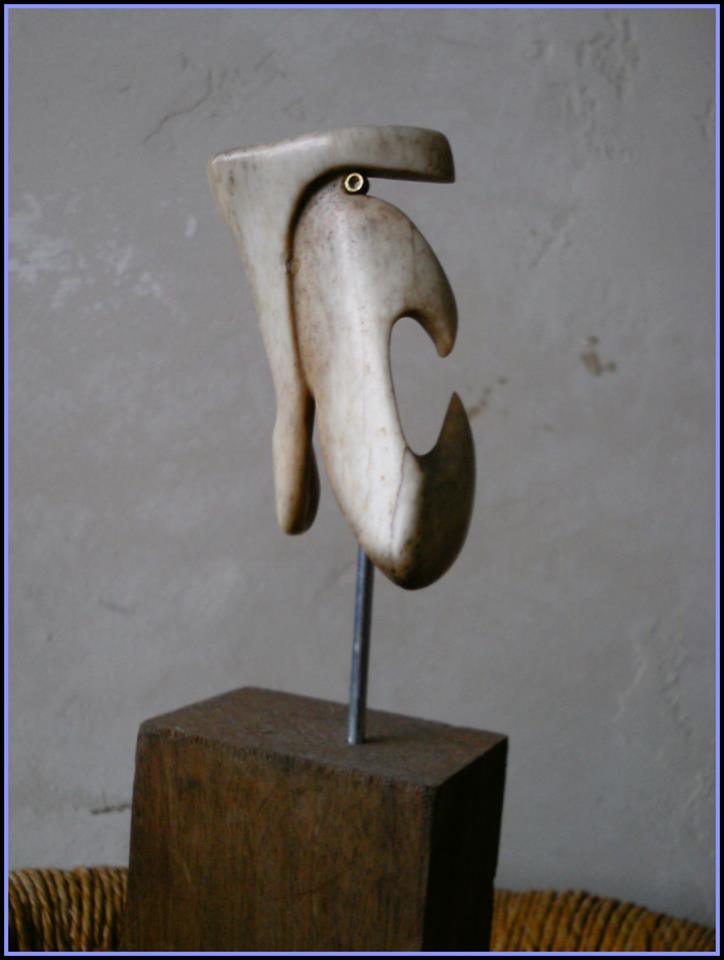 title Elvis cow bone piece of wire and wooden standart bonepart is 9x7cm all together 27cm high cow bone
