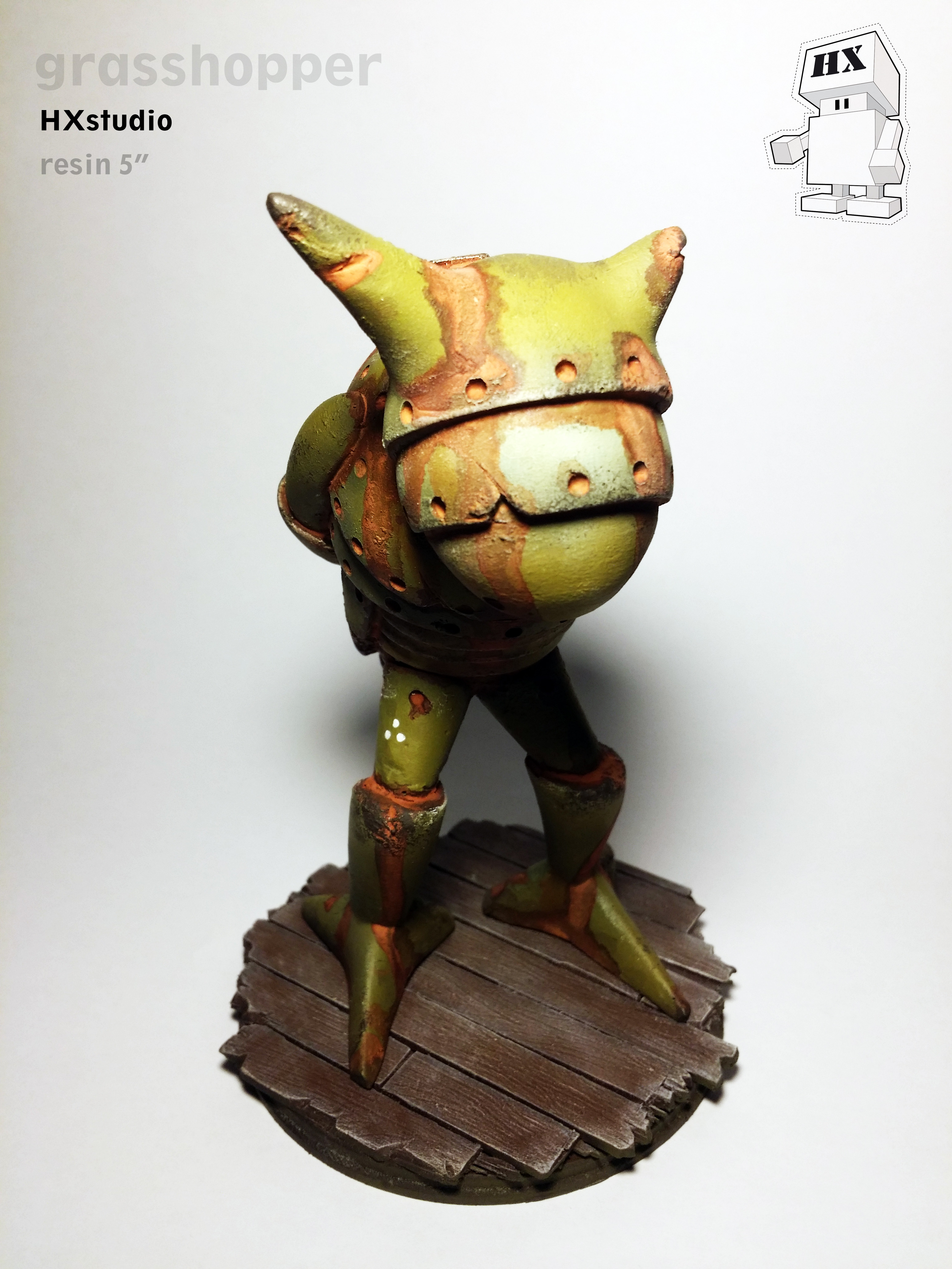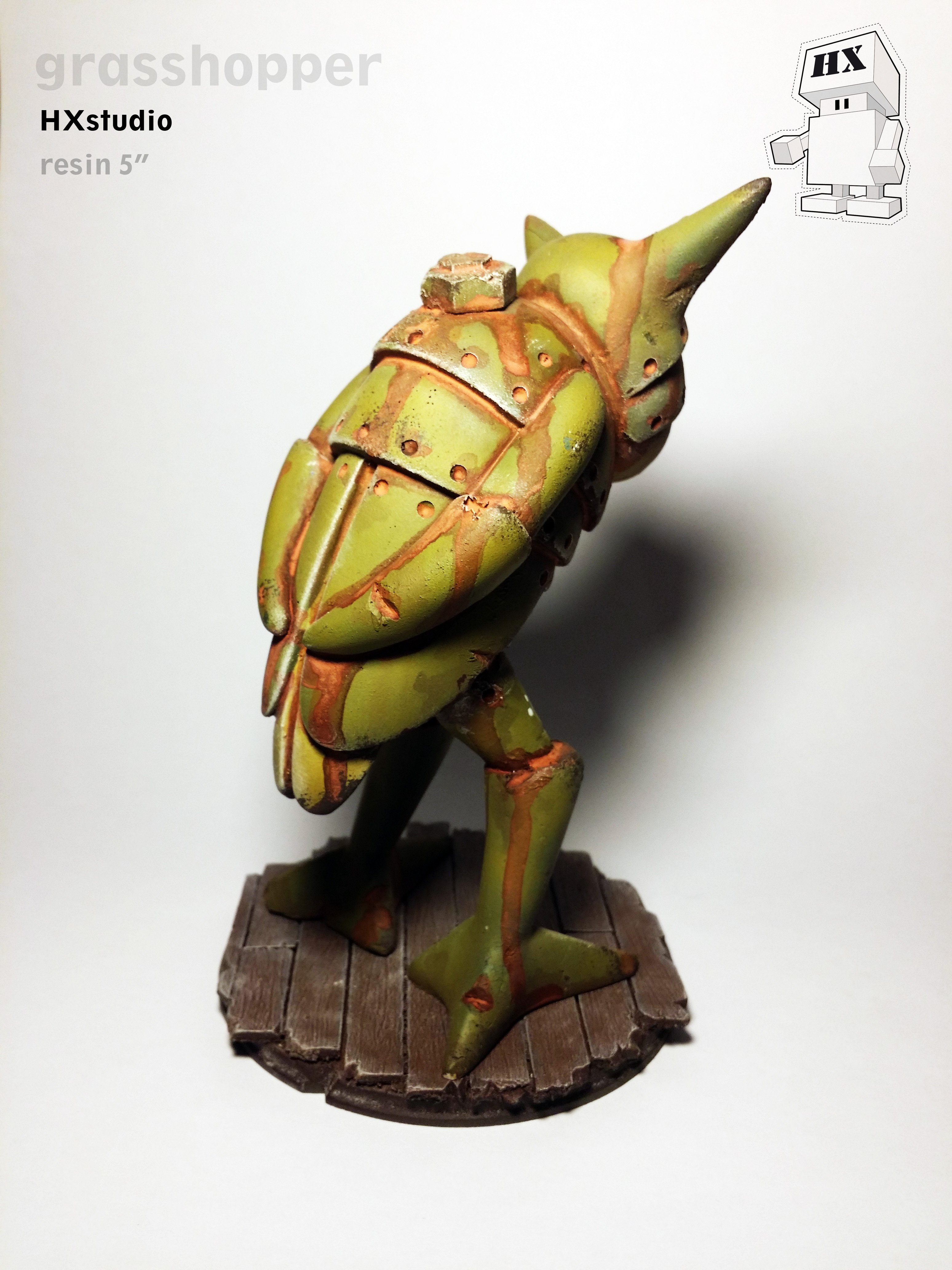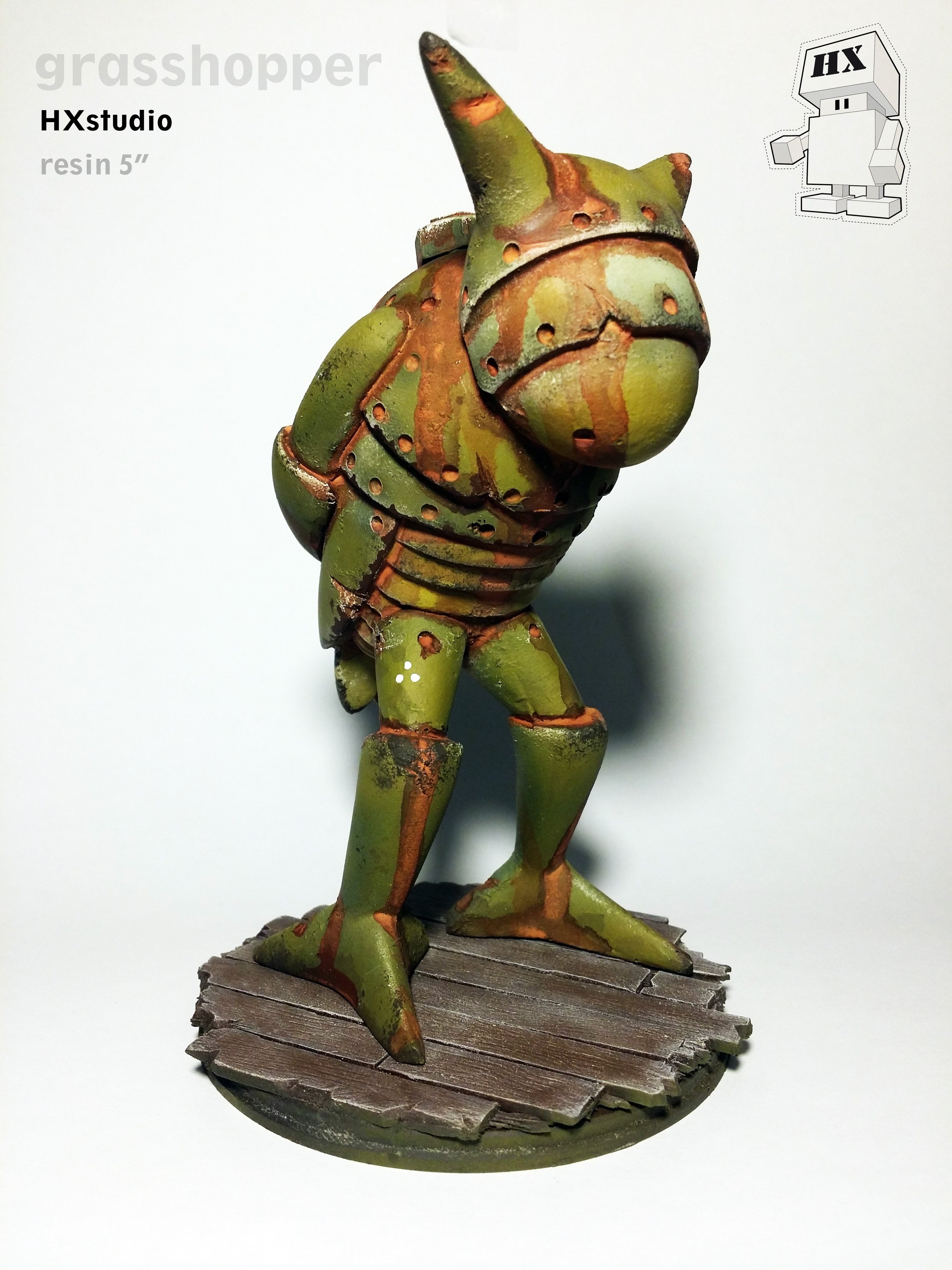 Name: "Grasshopper" Size: 5" resin hand cast Media: Acrylic paints