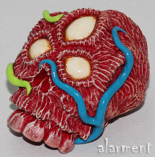 Resin skull hand cast by Allan Armenta based off of custom sculpt, also by Allan. Each resin cast skull has unique epoxy resin sculpted embellishments and unique acrylic paint job, making each piece one of a kind.