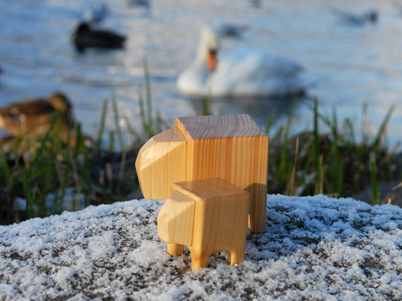 The OLGOS are handcrafted out of swiss spruce. These figures have a high gloss finish and each piece is signed and numbered by the artist (iron branded/embossed).