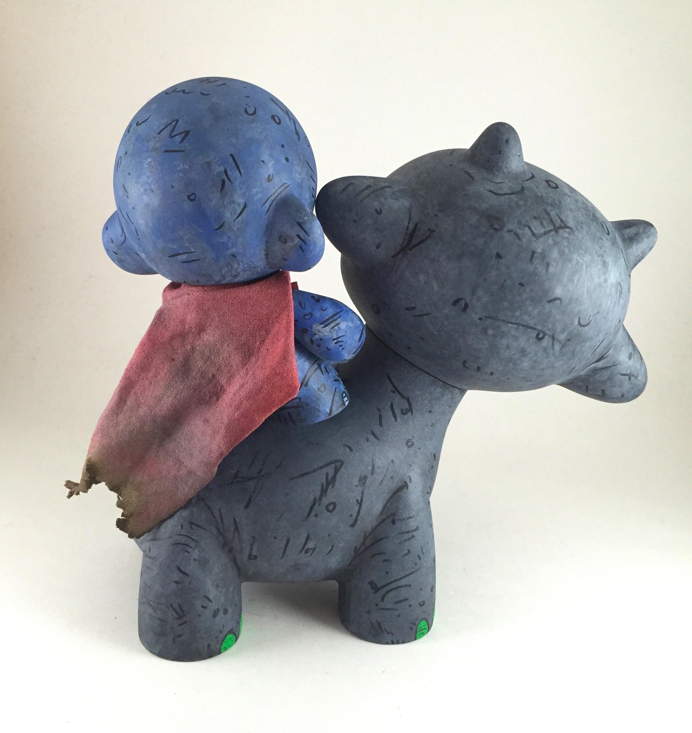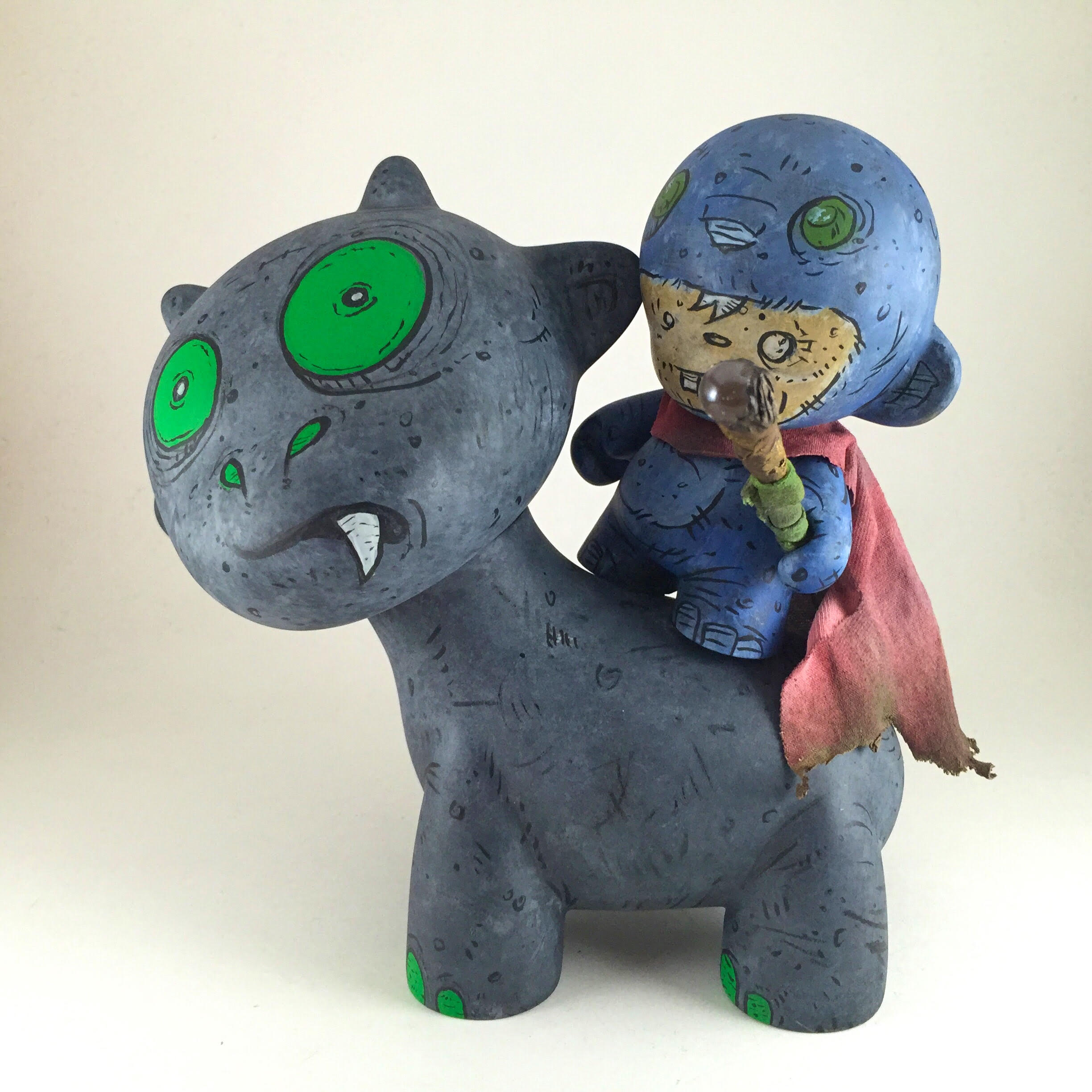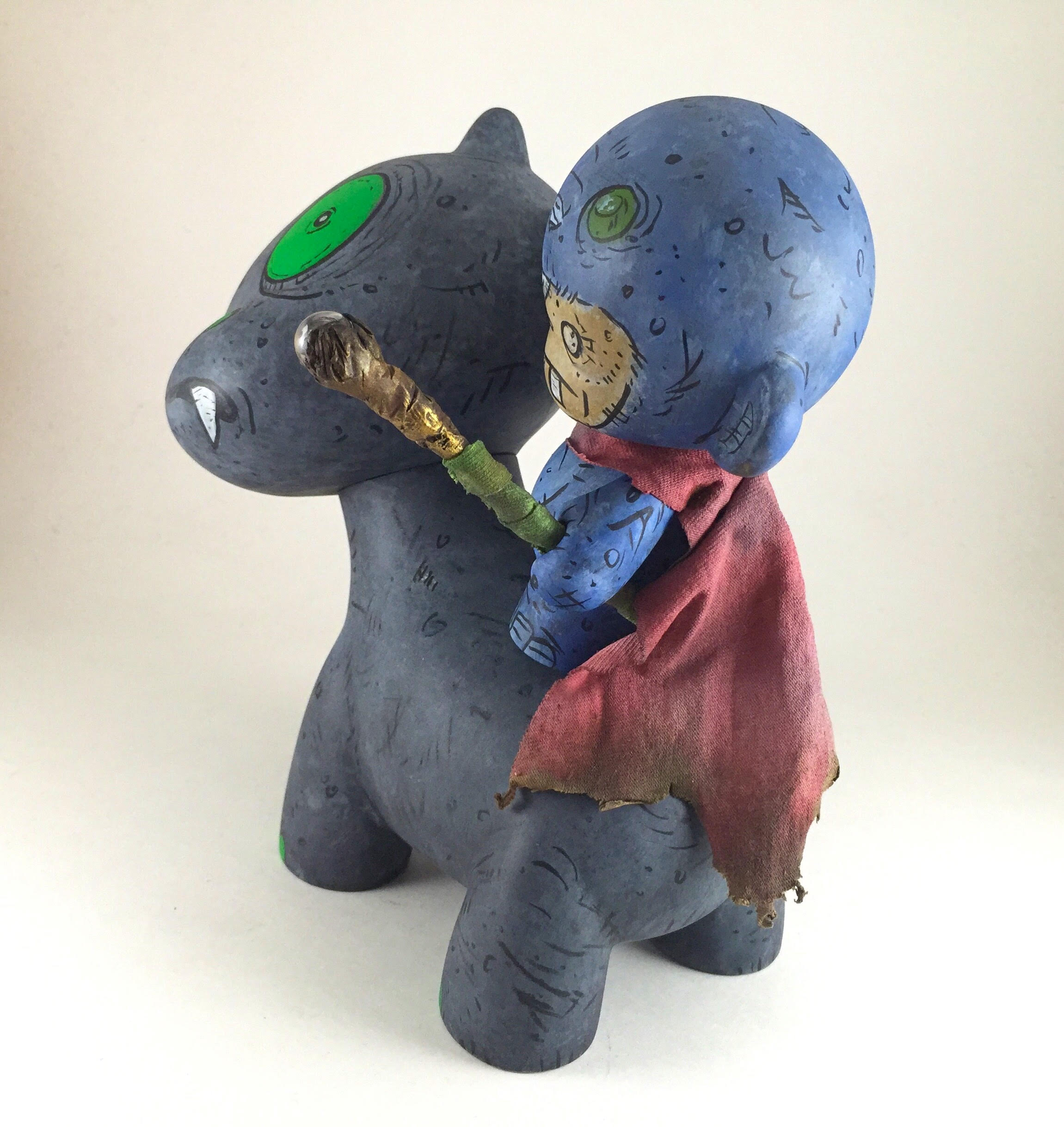 Monster Boy Mage with Kimber. Munny is 4" and Raffy is 7" tall. mixed media