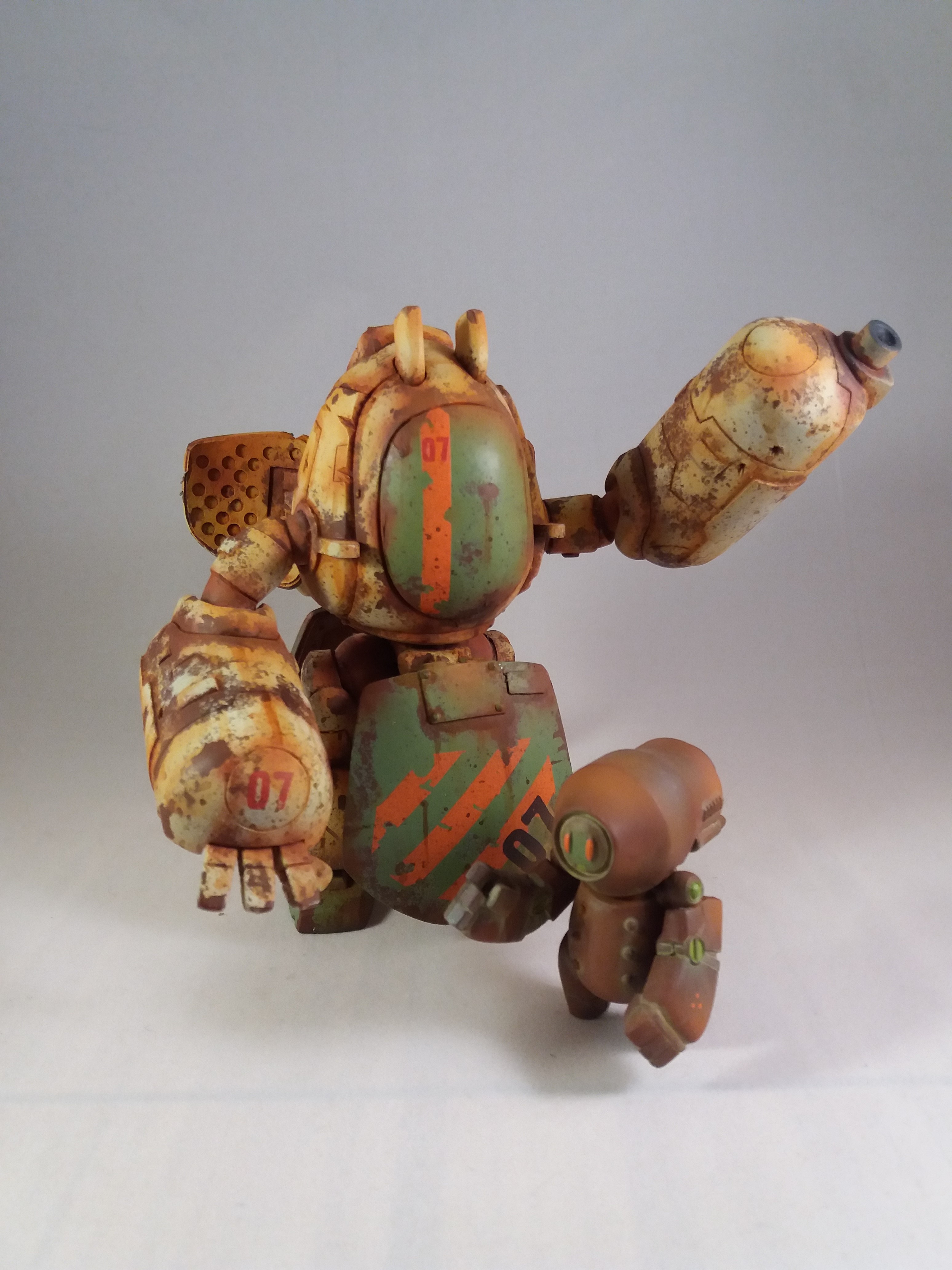 mixed media base mixed media resin robot 7 inch tall and 3 inch tall toys