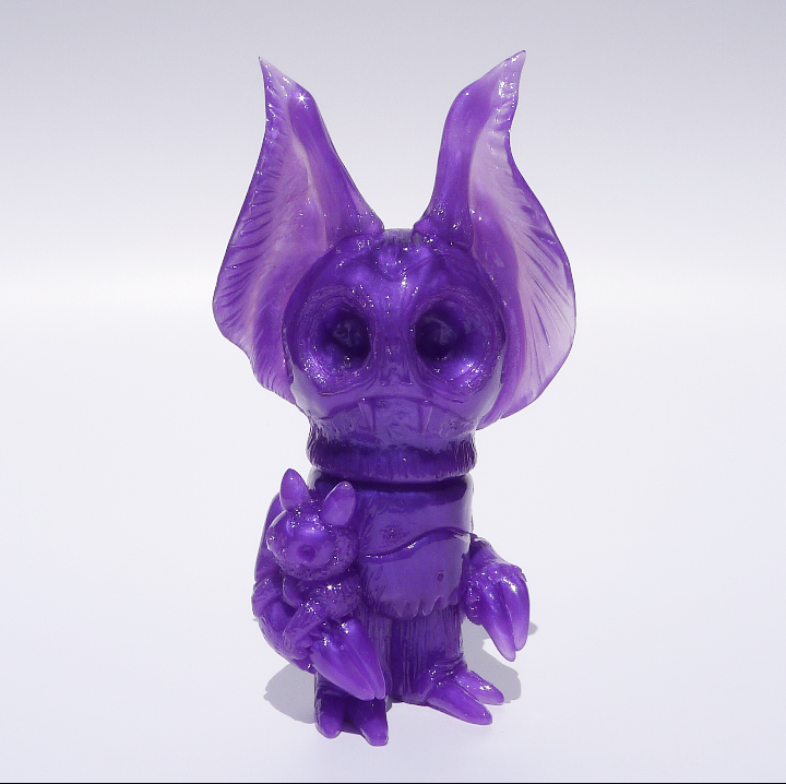 "Sonny". He is a fun and friendly bat. He is a two-part resin piece that is solid translucent pearlesent purple resin. He is 6 1/2".