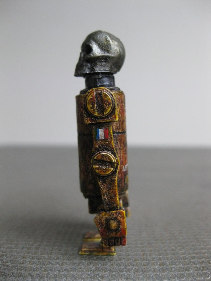 2 inch Death's head Bertie - rusted up and weird. 3A Bertie base, rusted and ink washed, with resin skull