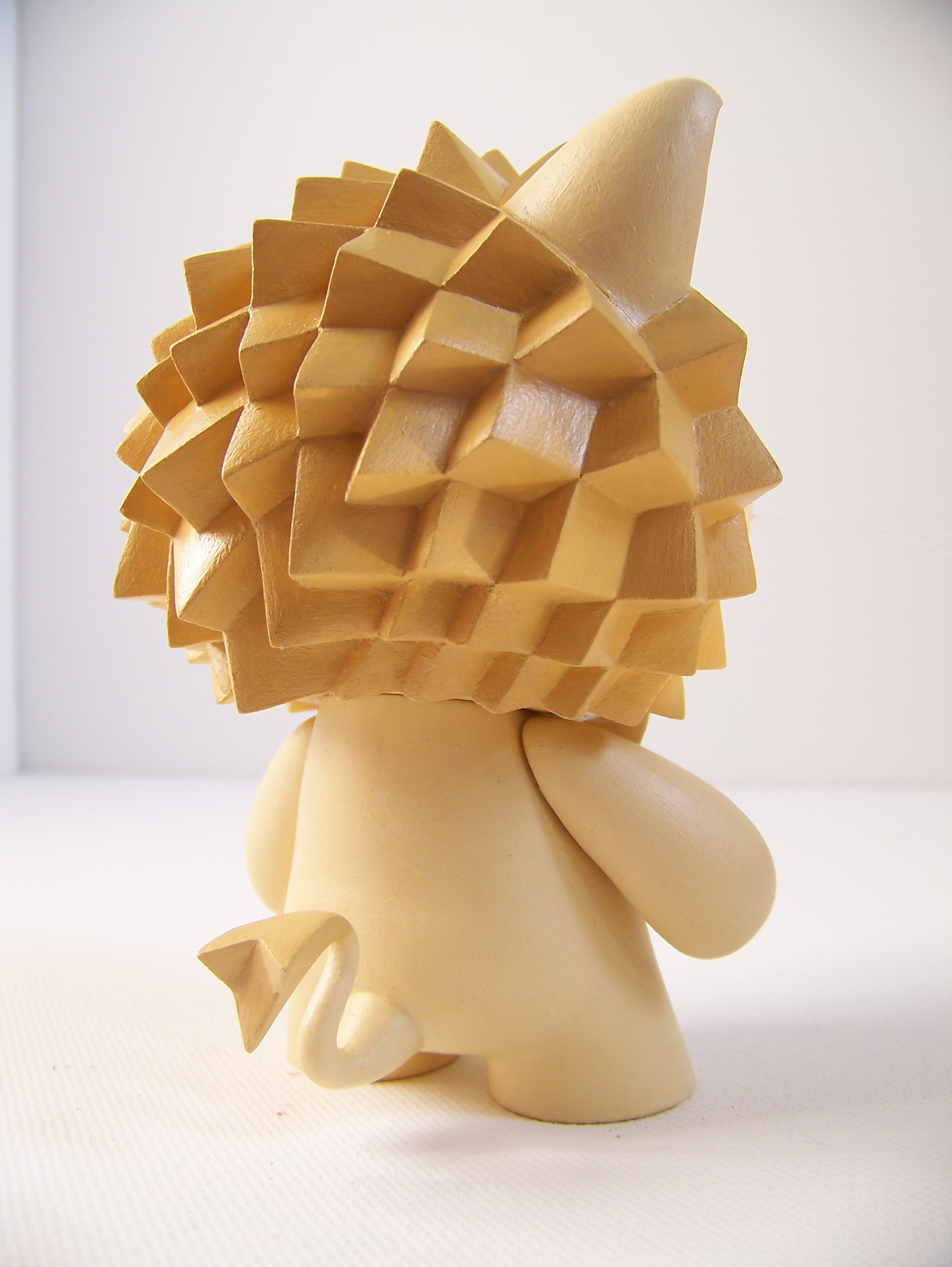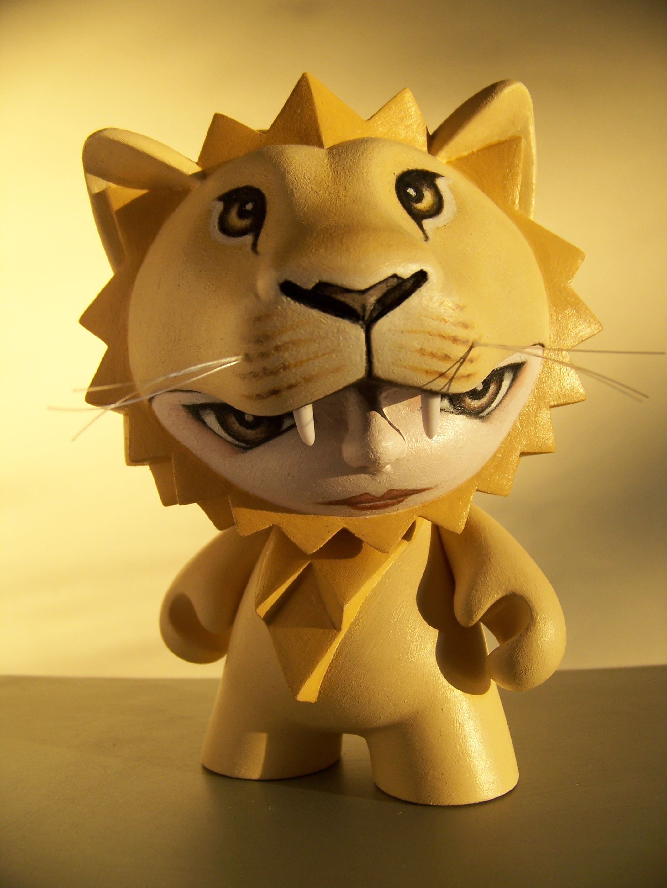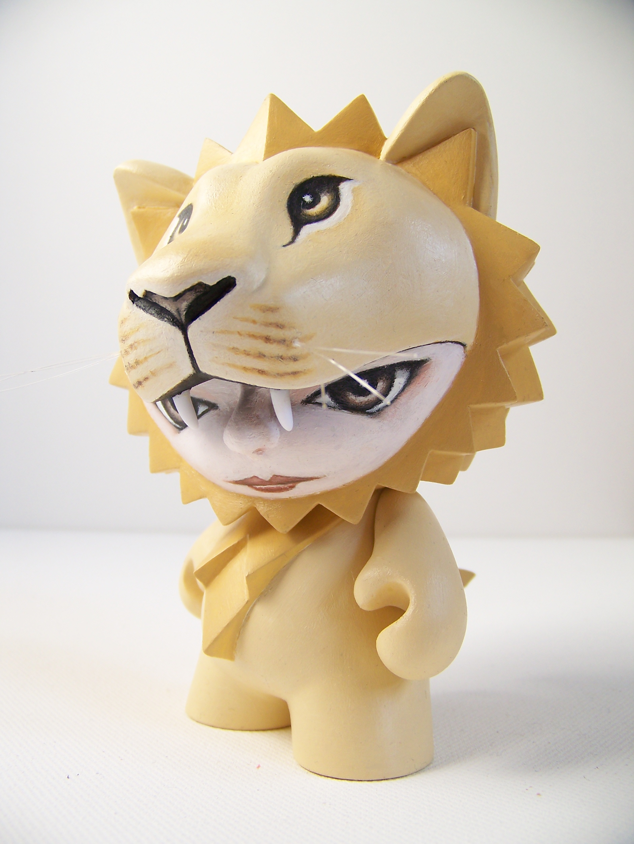 5" tall, based on Kid Robot's Trikky and Munny figures, modified with Sculpey III and painted in acrylic. The whiskers are nylon wire, the teeth are made from the tails that come with Kid Robot's Foomi figure.